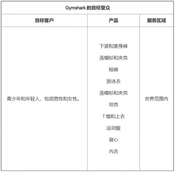 比如 LuluLemon 的受众是瑜伽爱好者,Under Armour 的受众是有运动表现需求的人群,而对于 Gymshark 来说,他们的细分领域则是:有训练痕迹的、追求专业健身的人群。