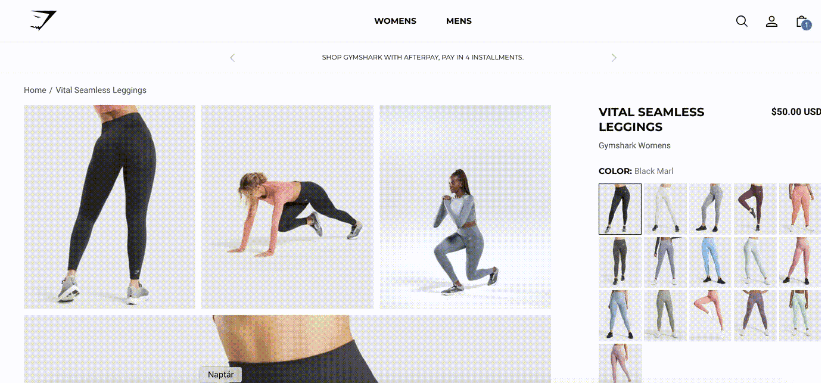 除此之外,在产品的详情页面,Gymshark 不仅展示了高质量的图像还应用了模特穿着服装运动起来的 GIF 动图,以准确地展示他们的产品在锻炼过程中的功能。