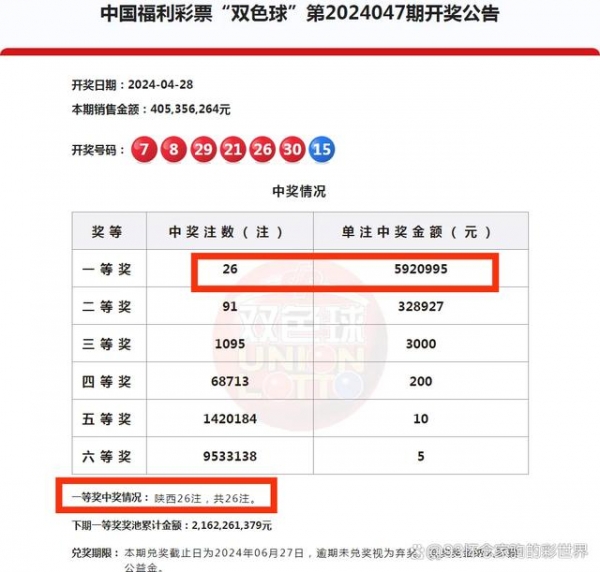 4月28日晚双色球再爆超级大奖,当期一等奖井喷26注,单注奖金592万元。