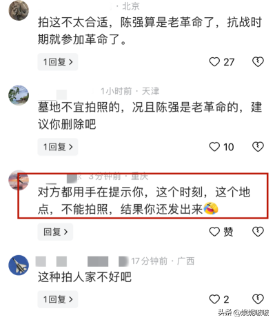 只见照片上,陈佩斯没有被别人影响依旧虔诚的在给父亲上香,陈大愚在一旁抬举手示意对方安静,父子俩的素质对比起偷拍者的素质,可见一斑。