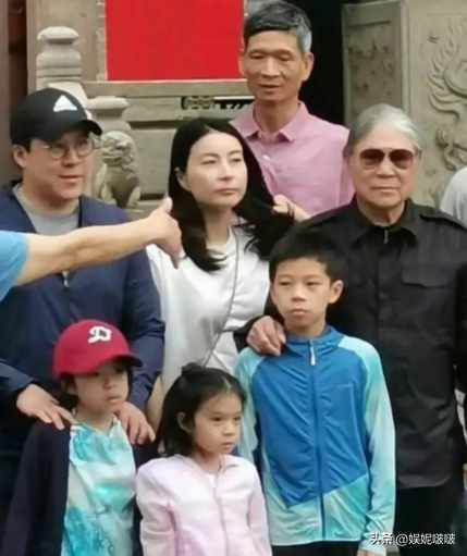 从合照可以看见郭晶晶的三个孩子都已经到了懂事的年纪,一大家子大大方方在宗祠面前合照。