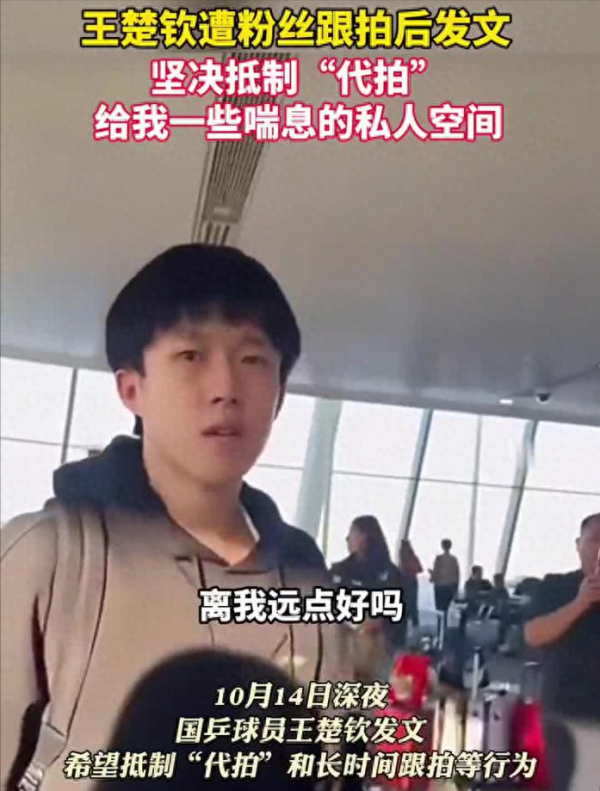 原因并不复杂。王楚钦在旅行途中,不仅被粉丝围观,还有一名女性粉丝拿着相机,几乎把镜头贴到他的脸上。王楚钦当场质问:"你是在和我自拍吗? 你离我这么近吗?"然而,这名粉丝视若无睹,依旧对着他狂拍。王楚钦怒了,他直言不讳地说:"你有病吗,你这样做,无关紧要吗?"很明显,王楚钦已经被激怒了,而这一怒,瞬间引发了社交媒体上的一阵风暴。