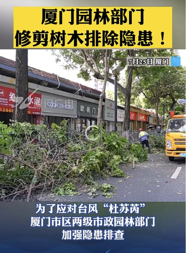 厦门市市政园林局绿化处一位工作人员表示,前些天园林部门已对全市的树木展开全面地毯式摸排,抢抓时间,重点排查出一些抗风性较弱的树木或枝干承重力不足的植株,并按照省里出台的相关标准,进行专业化的修剪,尽量减少台风对树木的影响。