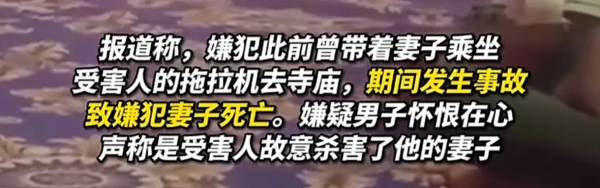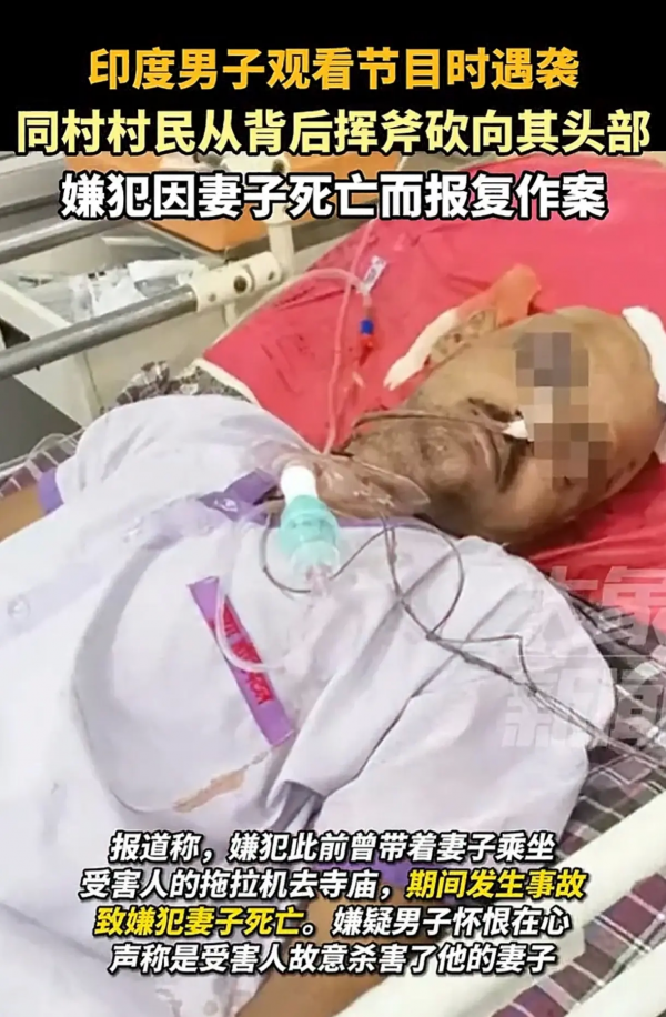 据印度媒体的报道,犯罪嫌疑人的妻子曾乘坐受害者的拖拉机去寺庙,没想到乘坐的过程中发生意外,致犯罪嫌疑人的妻子死亡!但是犯罪嫌疑人认为受害者是故意杀害他的妻子,因此犯罪嫌疑人怀恨在心才将斧头挥向受害者!