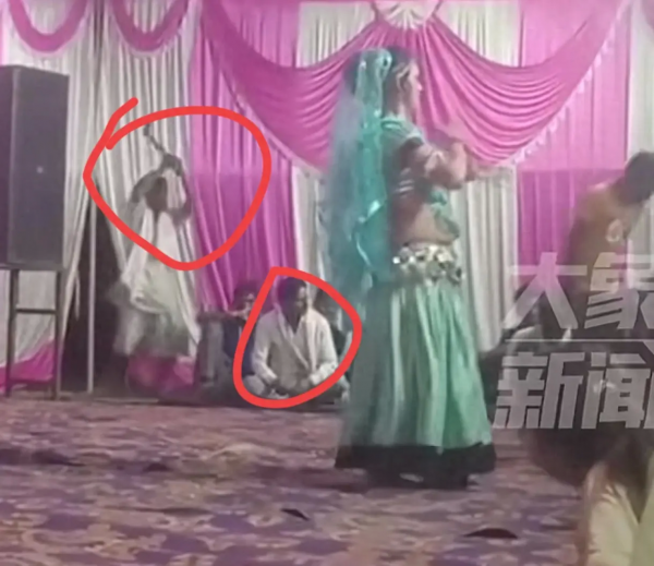 从视频中我们可以看到,一名身穿绿色服饰的印度女子正在舞台上热舞,场边的几名男子也是看得非常的入迷,而受害者也完全没有感觉到危险的降临!