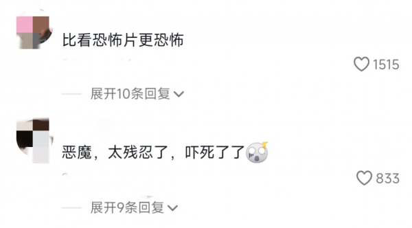 网友说:"恶魔,太残忍了,吓死了!"