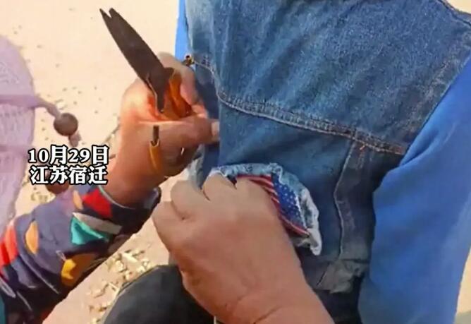 10月29日,江苏宿迁的一位奶奶发现孙子衣服背面缝着外国国旗,她立即采取了行动。她拿来了剪刀,毫不留情地将外国国旗拆扯掉。这一幕让人深受震撼,也让旁观者深感敬佩。