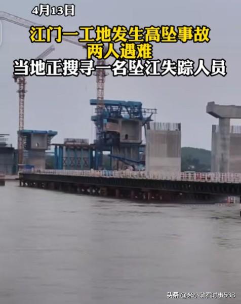 4月13日,广东省江门市境内的国道G240线新会会城至牛湾段改建工程第4标段,潭江特大桥北岸桥墩钢铁支模(架)突发倒塌事故,据了解,掉落在桥墩的三人,两人死亡,1人重伤。掉入江中的1人(徐某)下落不明。