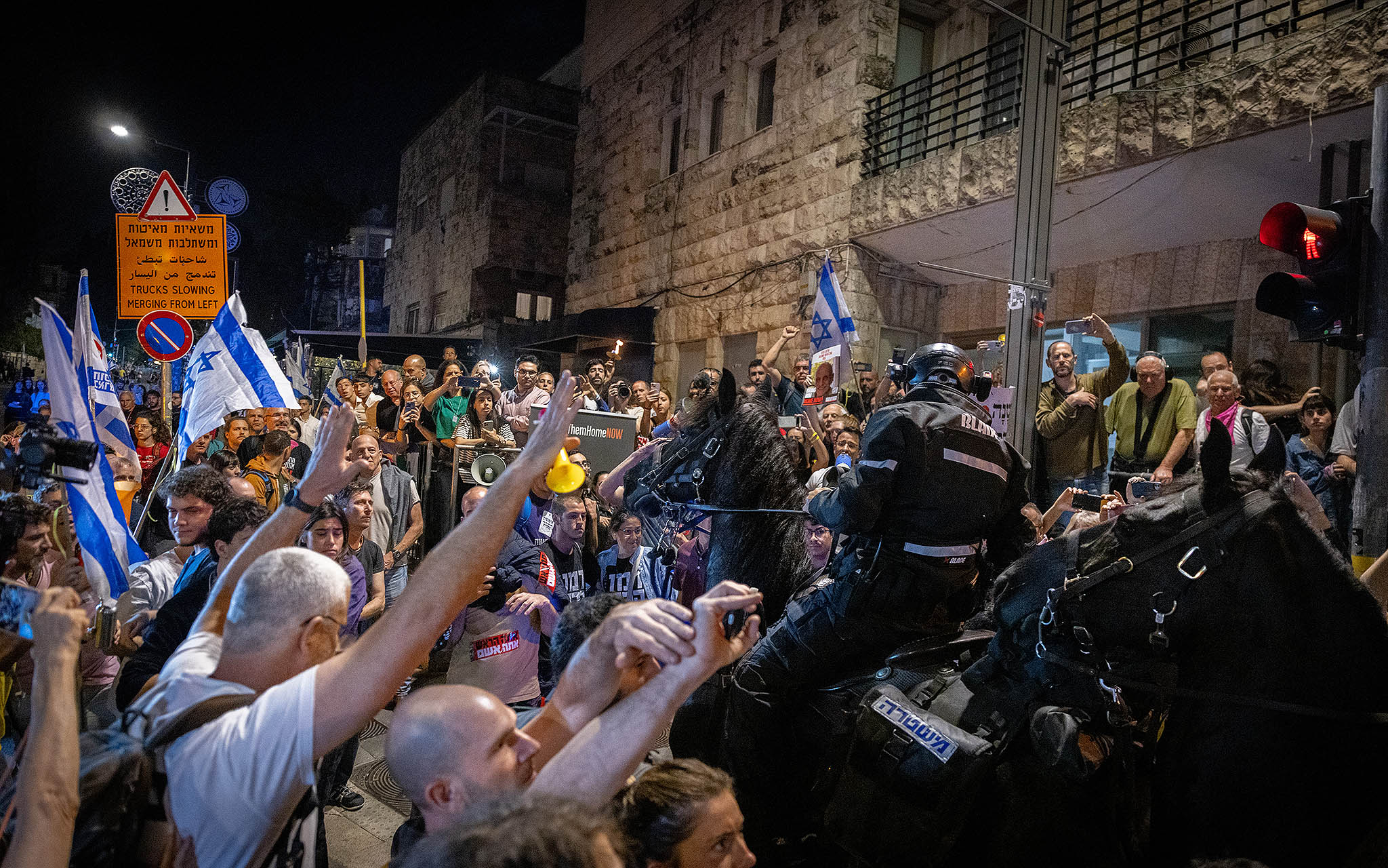 现场照片显示,执法警察冲进人群阻止示威者向前挺近,并用高压水枪驱散示威者,其中许多人高举着以色列国旗。此后,以色列警方将这一阶段的游行活动定性为"肆无忌惮的骚乱"。
