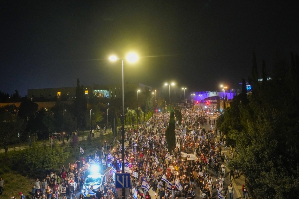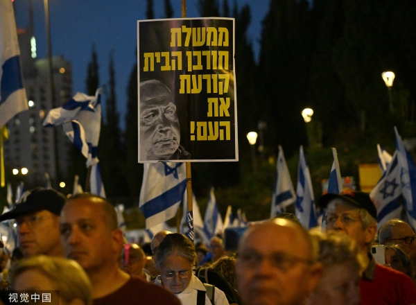 当地时间3月31日,数万以色列人在耶路撒冷举行抗议集会 图源:视觉中国