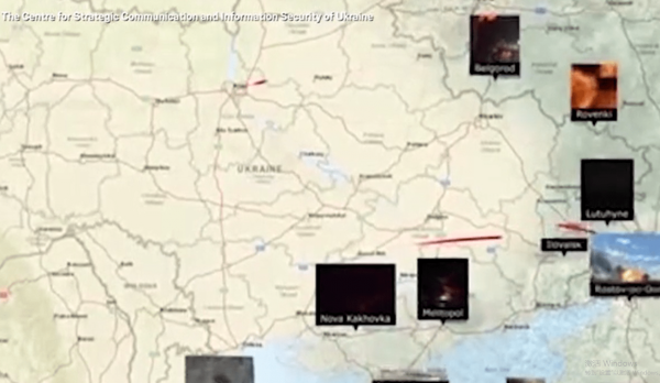 之后,这些战机化作红线,动画显示它们从乌克兰不同地区飞往俄罗斯或被俄罗斯占领的地方,包括塞瓦斯托波尔和梅利托波尔。