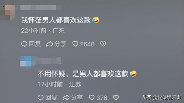 还有网友调侃,是不是男人都喜欢这样的,这个提问也是得到了下面网友的肯定答复。