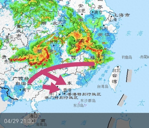 明天(周二,30号)中午~下午,强雷暴将南下影响肇庆,佛山,广州,河源,梅州,惠州中北部,云浮,以上地区普遍有雷暴⚡️。下午到晚上期间,广东沿海地区也将在晚些时候,大概率受到雷雨~雷暴的影响,我们将密切观察。