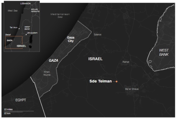 红点处为以色列斯德泰曼(Sde Teiman)拘留中心位置(图源:CNN)