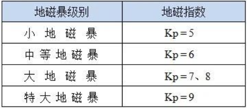 地磁暴可以分为以下几个级别: