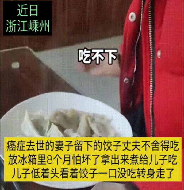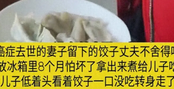 近日,一条视频触动了无数人的心。视频中,一位男子的妻子因癌症去世,留下了他和儿子相依为命。在冰箱里,男子找到了一包妻子生前包的饺子,他一直不舍得吃,保存了8个月。最后,为了让儿子品尝到母亲的味道,他决定煮给儿子吃。