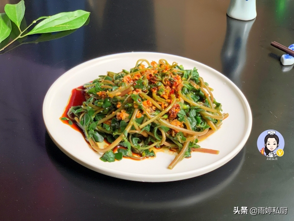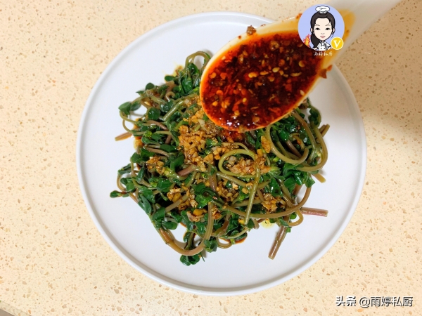 8、把调好的调味汁直接浇到马齿苋上即可,如果喜欢吃辣,也可以像我这样,再调入1汤匙辣椒油,更能调动食欲,酸辣甜香更开胃。