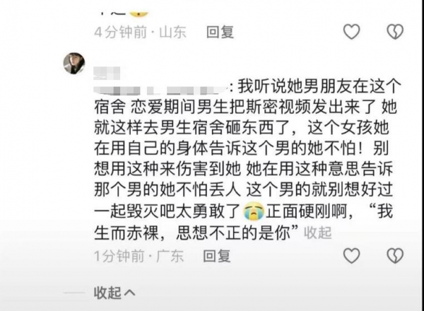女子男朋友就住在这个宿舍,恋爱期间男朋友把女子私密照片发出去了,女子发现后接受不了,这才如此闯入男生宿舍,挨着敲门,寻找男子踪迹,打砸物体。