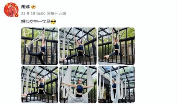 近日,谢娜在个人社交平台上分享了一组练习空中瑜伽的美照,引来无数粉丝的热议和羡慕。