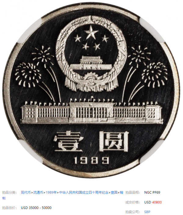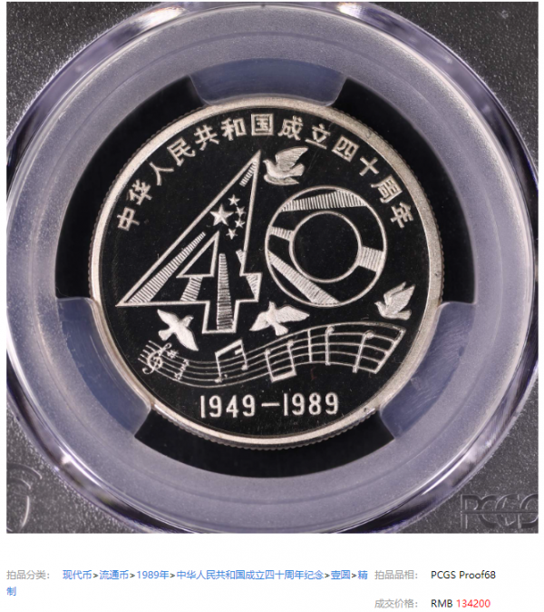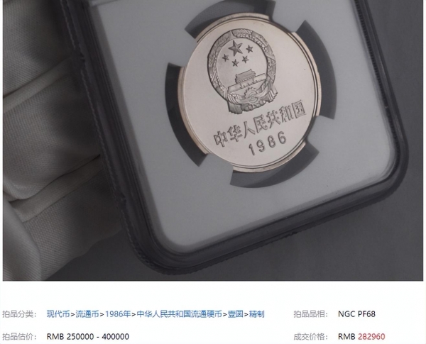 近期,就有一枚NGC68分的89年精制1元,出现在拍卖会上,拍出了13.42万。