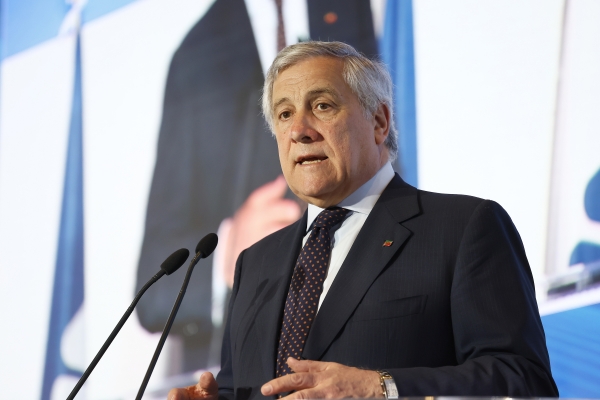 2023年6月23日,意大利罗马,意大利副总理兼外长塔亚尼在会议中发表讲话/澎湃影像