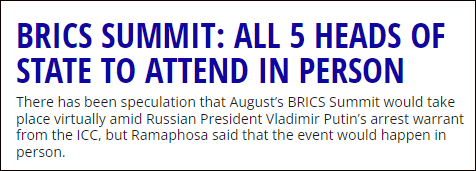 国际刑事法院(ICC)在今年3月对普京发出"逮捕令",如果普京踏入包括南非在内的ICC成员国领土,相关国家"有义务逮捕普京"。但南非国际关系与合作部已在5月31日宣布,南非将为出席金砖国家活动的外国政要提供外交豁免待遇。