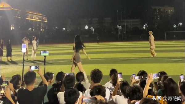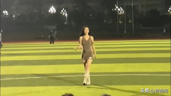 当镜头拉近时,只见她身穿一件咖啡色连衣裙,凸显出她完美的身材曲线和白皙的大长腿,此时她毫不羞涩地展示自己的魅力,并且每一个动作都是那么的迷人,直接吸引了全场同学的目光,有的同学甚至还拍照留念,