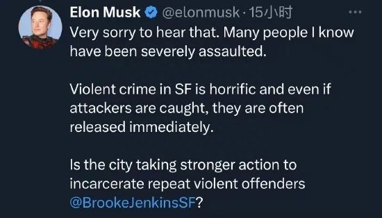 鲍勃·李遇害的消息在币圈及科技界引起极大关注。马斯克发文称,"听到这个消息我很难过。我认识的很多人都遭到了严重侵犯"。他补充说,"旧金山的暴力犯罪是可怕的,即使袭击者被捕,他们通常也会被立即释放。"他同时质问旧金山市是否采取更强有力的措施来预防暴力犯罪。