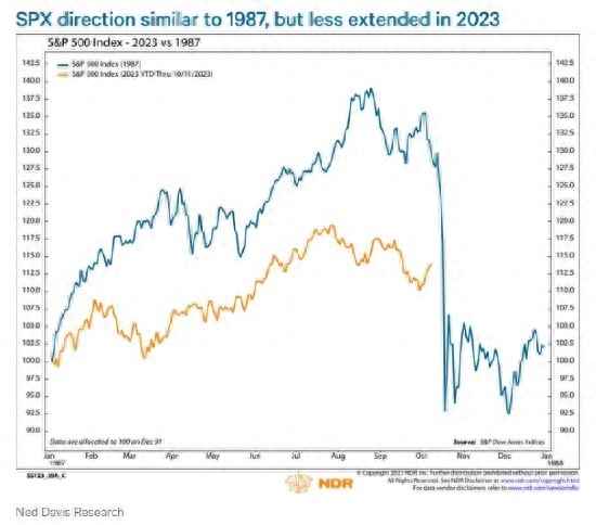 美国投资研究机构Ned Davis Research(NDR)认为,今天的美国股市与1987年的股市有着惊人的相似之处。此前德银也曾发出类似的警告。