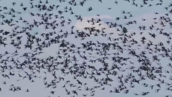 市民拍到大量飞鸟聚集街头,地震的前兆?