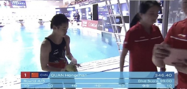 本次比赛全红婵更多是挑战自我,陈芋汐的缺席让全红婵的夺冠毫无悬念,而全红婵也做到了自我提升,心魔动作207C直接轰下6个10分评分,总分99分彷佛让我们看到了东京奥运会那个横空出世惊艳世界的全红婵!比赛结束后,陈若琳教练还在场边指导着全红婵,进行复盘,这足以体现陈若琳和全红婵的比赛态度,拿下一次世界杯分站赛冠军并不算什么,这对师徒深知最重要的目标是巴黎奥运会。