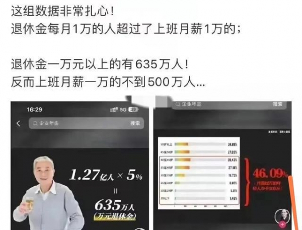 有人说,退休金1万元以上的人有635万人。因为人们估算养老金超过1万元的人占全部老人的5%,有1.27亿老人乘以5%推算而来。说实话,这个结果是很早以前的结果,有点过时了。