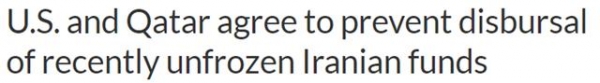 今年9月,美国宣布完全解冻伊朗在韩国被冻结的60亿美元、并转账至卡塔尔银行账户。