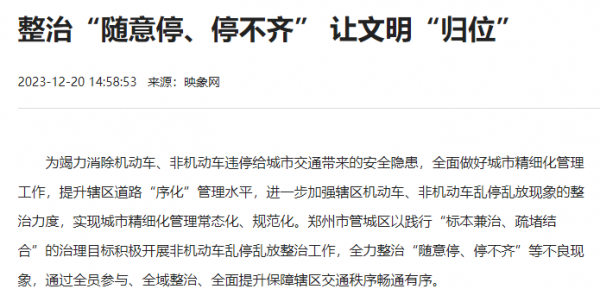 为了提高城市的市容市貌,近期,河南省也开始了整治"随意停、停不齐"的违规行为,这样既可以提升交通秩序畅通有序,又增强了城市的市容美观,可谓是一举两得。