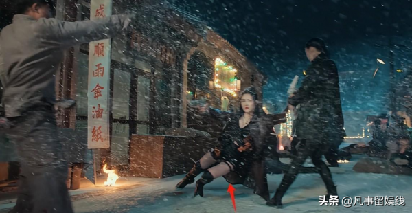 比如女主外出时,虽天寒地冻却只穿着短靴黑丝,别提多不合理了。这样清凉的着装放在娱乐圈派对上还说得过去,但放在严寒的室外简直荒诞。豪放的着装与环境格格不入,让人一看就知道是在刻意制造视觉冲击。