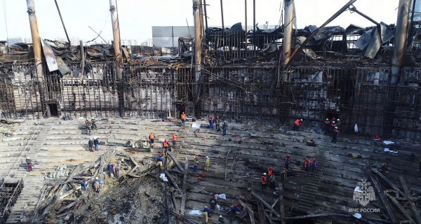 当地时间3月25日,莫斯科州遇袭音乐厅的瓦砾清理工作基本结束(图源:俄罗斯政府)