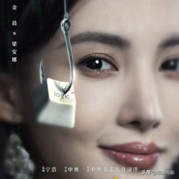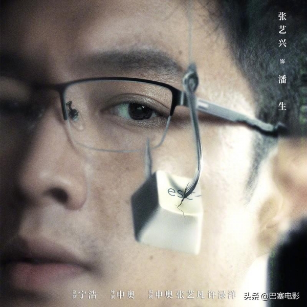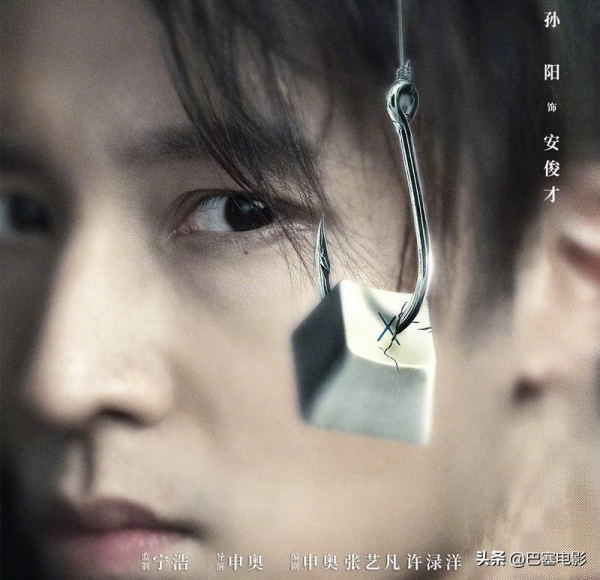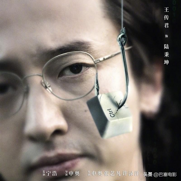 1、《孤注一掷》有组"钓鱼"海报,每张海报的核心都是一枚挂在鱼钩上的电脑按键。每个按键上,都有跟角色相对应的单词或字母。