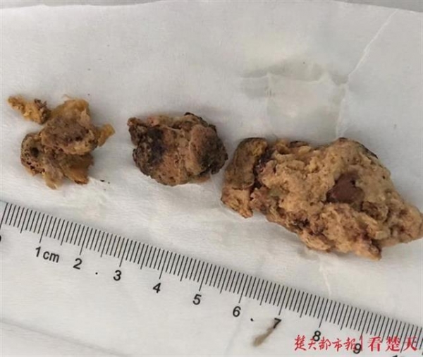 最近,40岁的王女士因反复腹痛、腹胀、厌食等症状,来到武汉科技大学附属天佑医院消化内科就诊。通过内镜检查,结果让王女士吓了一跳,原来,王女士的胃里躺着一颗6cm×7cm的巨大胃结石,石头在胃里面滚来滚去,这才使得王女士疼痛难忍。据王女士回忆,她酷爱吃柿子,半个月前婆婆家的柿子树熟了,一下没忍住,空腹一口气吃了四五个,味道十分甜美。可没过多久,王女士的肚子就闹起了"情绪"。