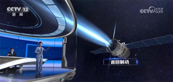 随后返回制动开始。在返回制动的过程中,除了推进舱底部的主发动机点火之外,侧面的姿控发动机也在不停工作,这是为了在制动的同时保持姿态的稳定。返回制动一般持续150秒到180秒。