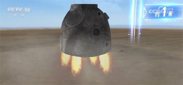 最后第四步着陆。距离地面1米左右时,四个着陆反推发动机会同时点火,返回舱进一步减速,最终以每秒2米左右的速度安全着陆。