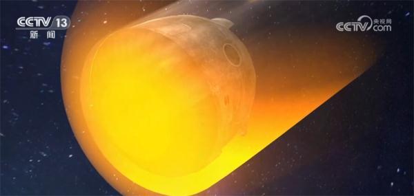 大约120公里高度,返回舱即将进入大气层,这时还要进行配平攻角调整。也就是把防热大底朝前,这样可以增加气动效应,更好利用空气阻力减速。