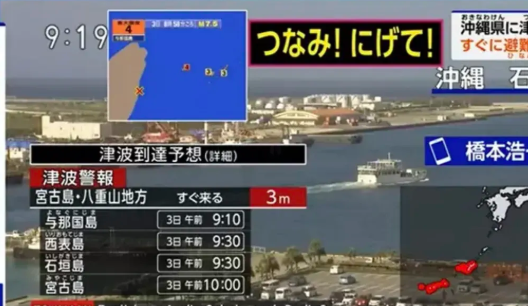 日本发生7.5级地震, 宫古岛冲绳本岛等地海啸警报,预计浪高3米