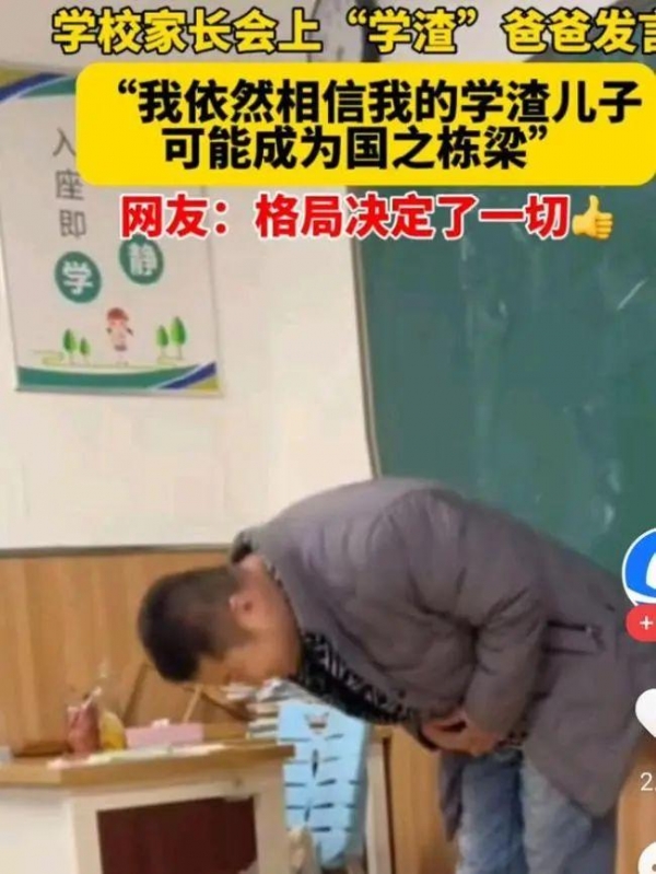 最近,一位山东青岛的家长火了。在家长会上,这位自称"学渣"父亲的家长在会上发言,他的发言既幽默又真诚,既有自嘲也有自信,既有反思也有鼓励,赢得了在场老师和家长的掌声和赞许。