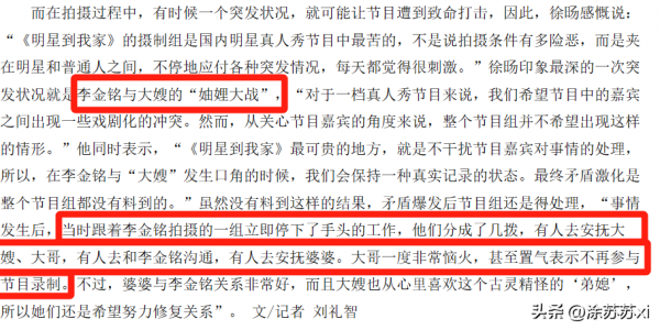 她的扮演者李金铭曾在2014年参加过一期综艺。进入到某村庄内的一户人家,作为"家庭一份子"完成日常生活。然而,她不仅被"嫂子"大声指责,毫不留情。