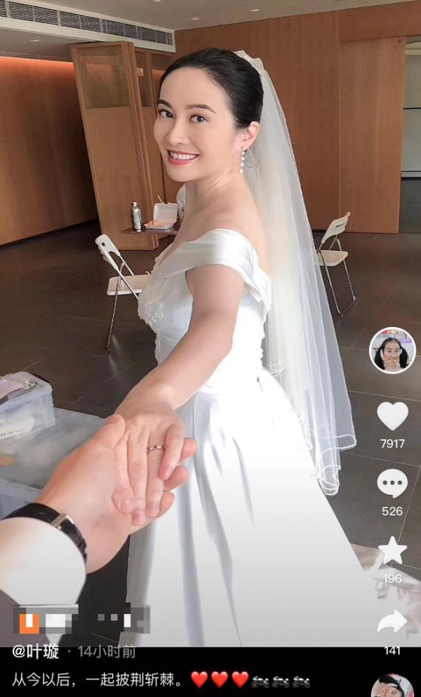 6月25日,香港知名女星叶璇突然晒出自己穿婚纱的美照,并配文"从今以后,一起披荆斩棘",被疑官宣结婚引发网友持续热议。