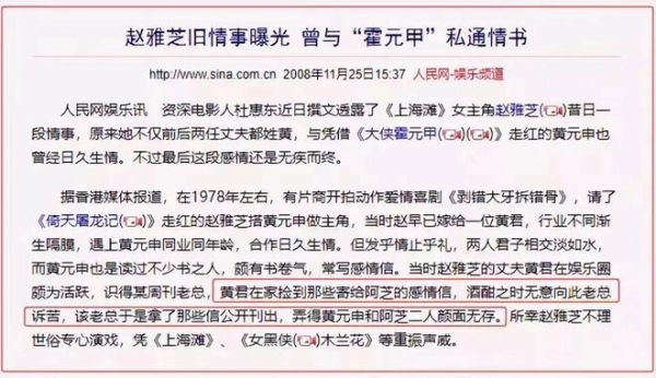 当这件事还没平息时,已婚男星黄元申给赵雅芝写的情书被她的老公发现,一怒之下爆料给了媒体,指责赵雅芝不守妇道。