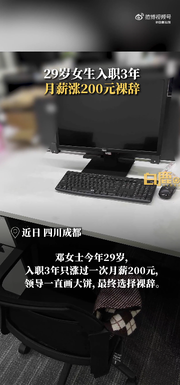 近日,一位29岁女生分享了自己裸辞原因,入职3年只涨过一次月薪200元,你能忍受吗?