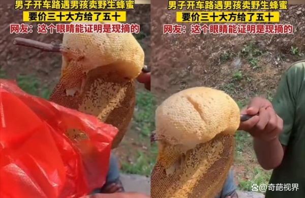 男子开车路遇小孩卖野生蜂蜜,要价三十大方给五十,孩子眼睛亮了
