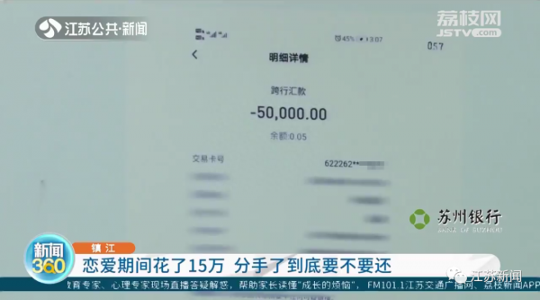 2018年,镇江董女士与徐先生相恋。起初两人感情甜蜜,徐先生经常通过微信、支付宝给董女士转账,表达爱意。
