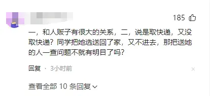 有网友表示,据孩子同学说,她帮同学取完快递送到同学家里之后,在同学家里玩到晚上9点就回家了,但是不知道为什么她并没有直接回家,而是又走了出去后,直接从监控里面消失了。
